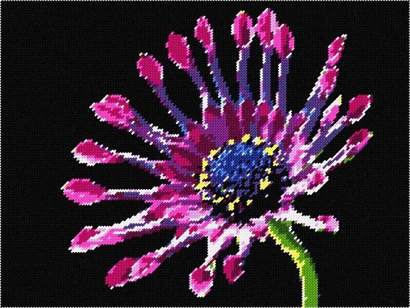 African daisy has a bold, graphic look that's hard to find in more common daisies. Flowers are big, up to 4 inches across, often with interesting, eyelike markings around the flower's center. Flowers and floral design are among the most popular needlepoint designs. People have been stitching flowers and floral motifs for hundreds of years. Flowers are bright and pleasant, and most have underlying meanings to them.