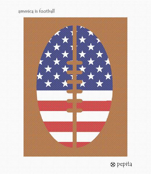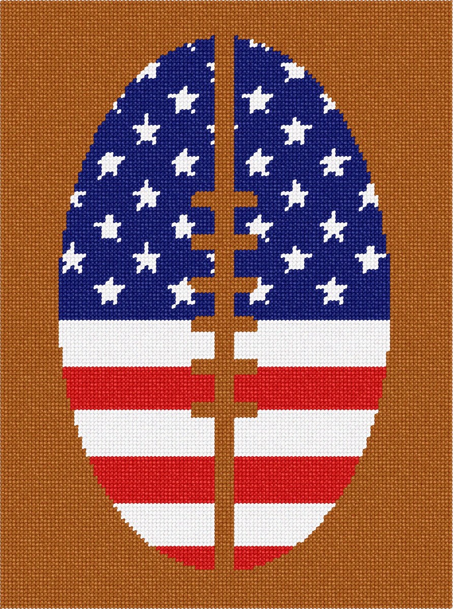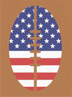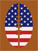 Football in stars and stripes. "The colors of the pales (the vertical stripes) are those used in the flag of the United States of America; White signifies purity and innocence, Red, hardiness & valour, and Blue, the color of the Chief (the broad band above the stripes) signifies vigilance, perseverance & justice."