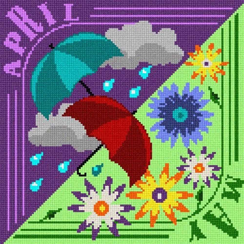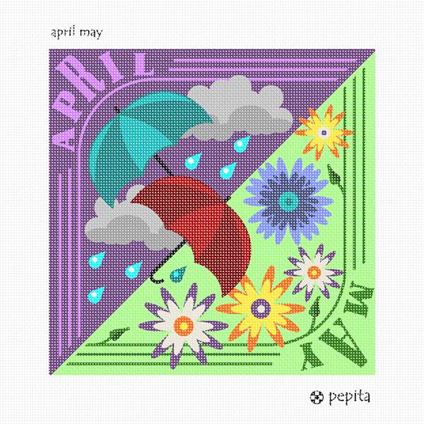 Depiction of the months of April and May, starring showers and flowers. Flowers and floral design are among the most popular needlepoint designs. People have been stitching flowers and floral motifs for hundreds of years. Flowers are bright and pleasant, and most have underlying meanings to them.