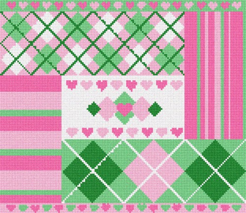 Argyle and striped pattern strips. Hearts and diamonds complete the design.