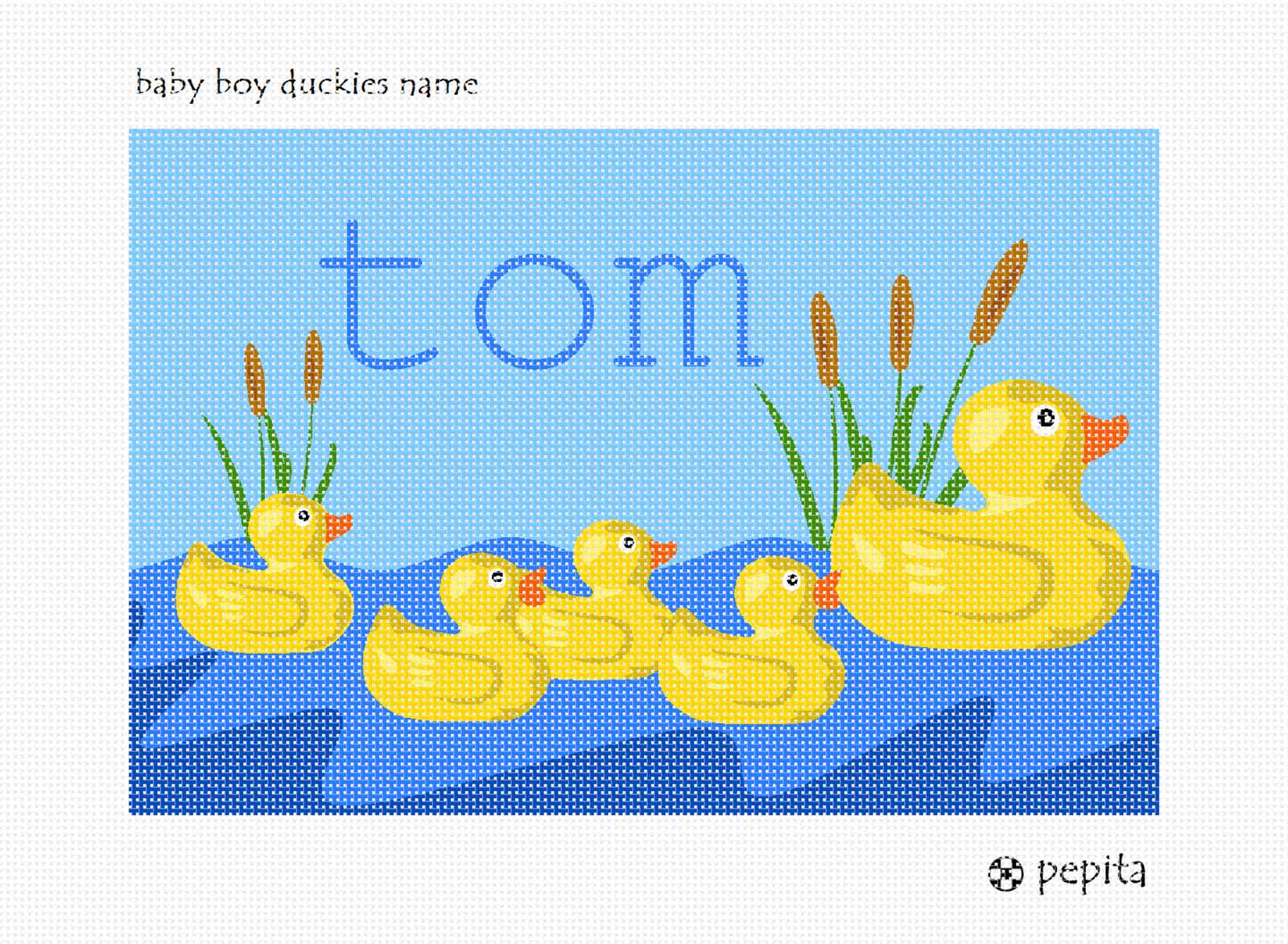 Quack quack quack - we all sang songs as kids about ducks and quacking. Stitch a needlepoint for a baby boy's room in the duckies theme.