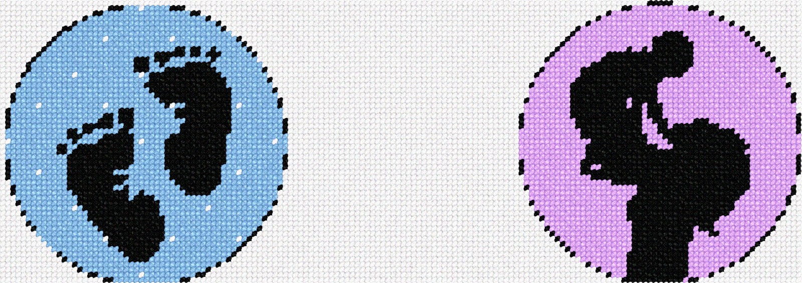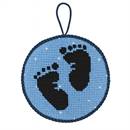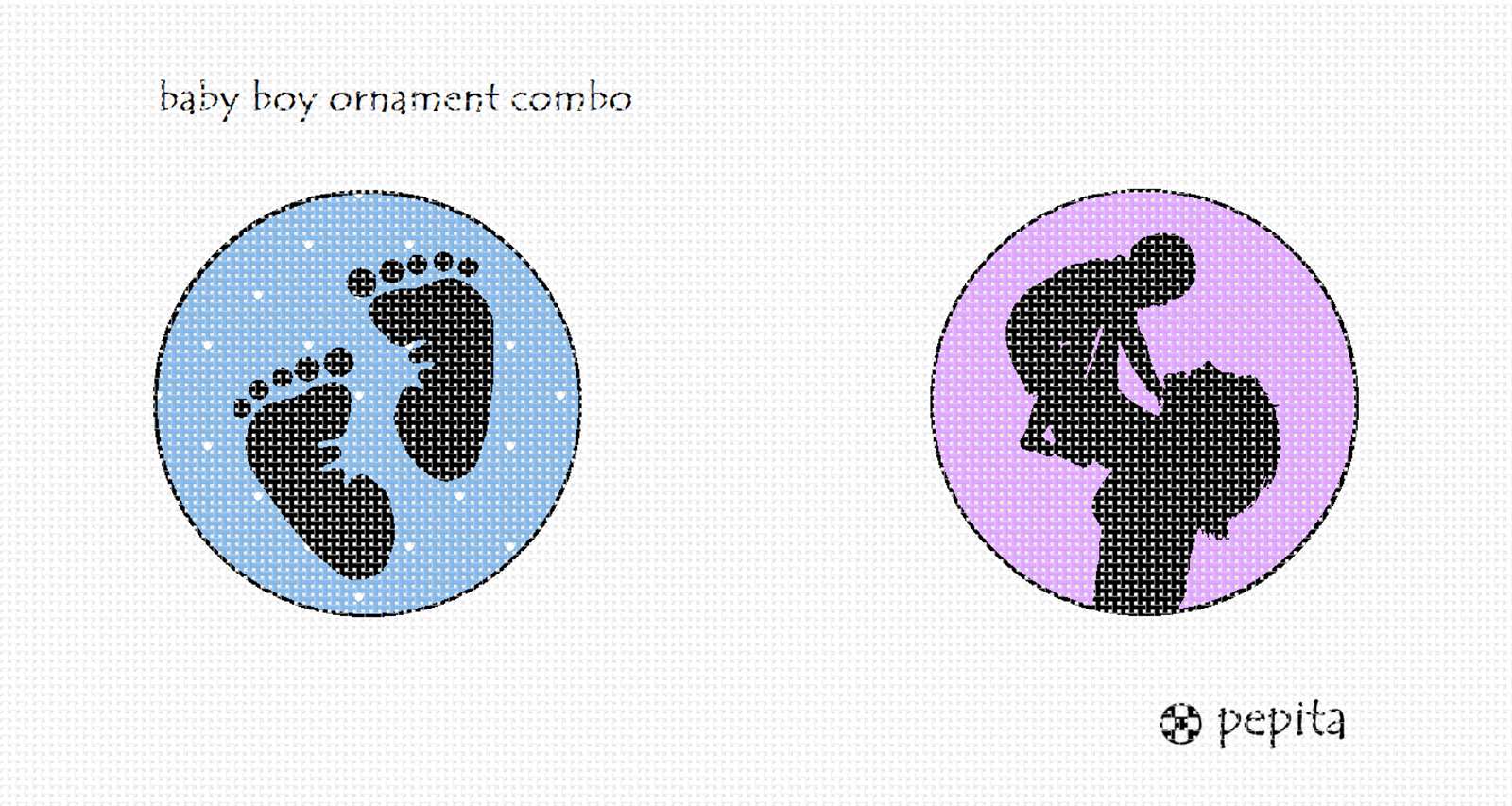 New! Pepita now designs ornaments. These are paired and sold as a set. This one has a newborn baby footprints and a mom enjoying her baby. Stitch two for the price of one. 18 mesh