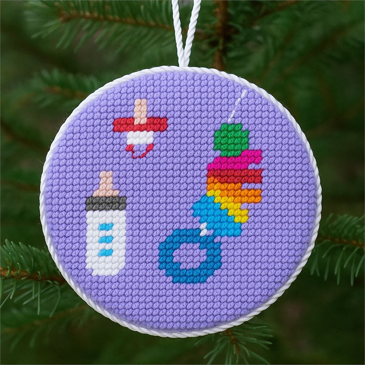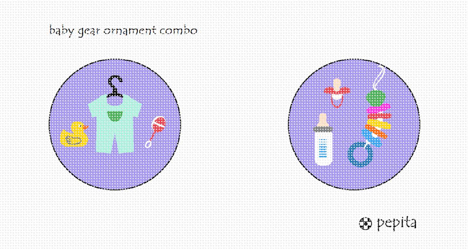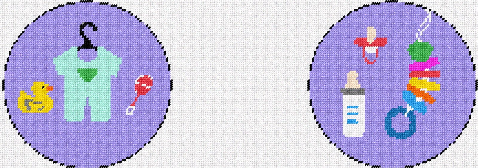 ew! Pepita now designs ornaments. These are paired and sold as a set. These are baby themed. Stitch two for the price of one. 18 mesh