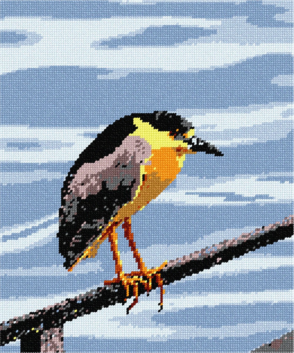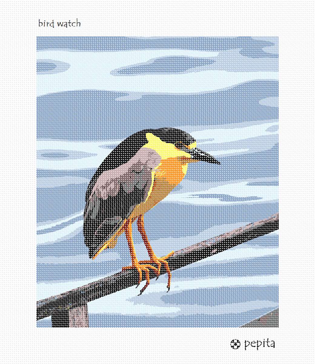 A new addition to our aviary collection. This bird is ready to be stitched. The surrounding ocean water is calming and fun to stitch.