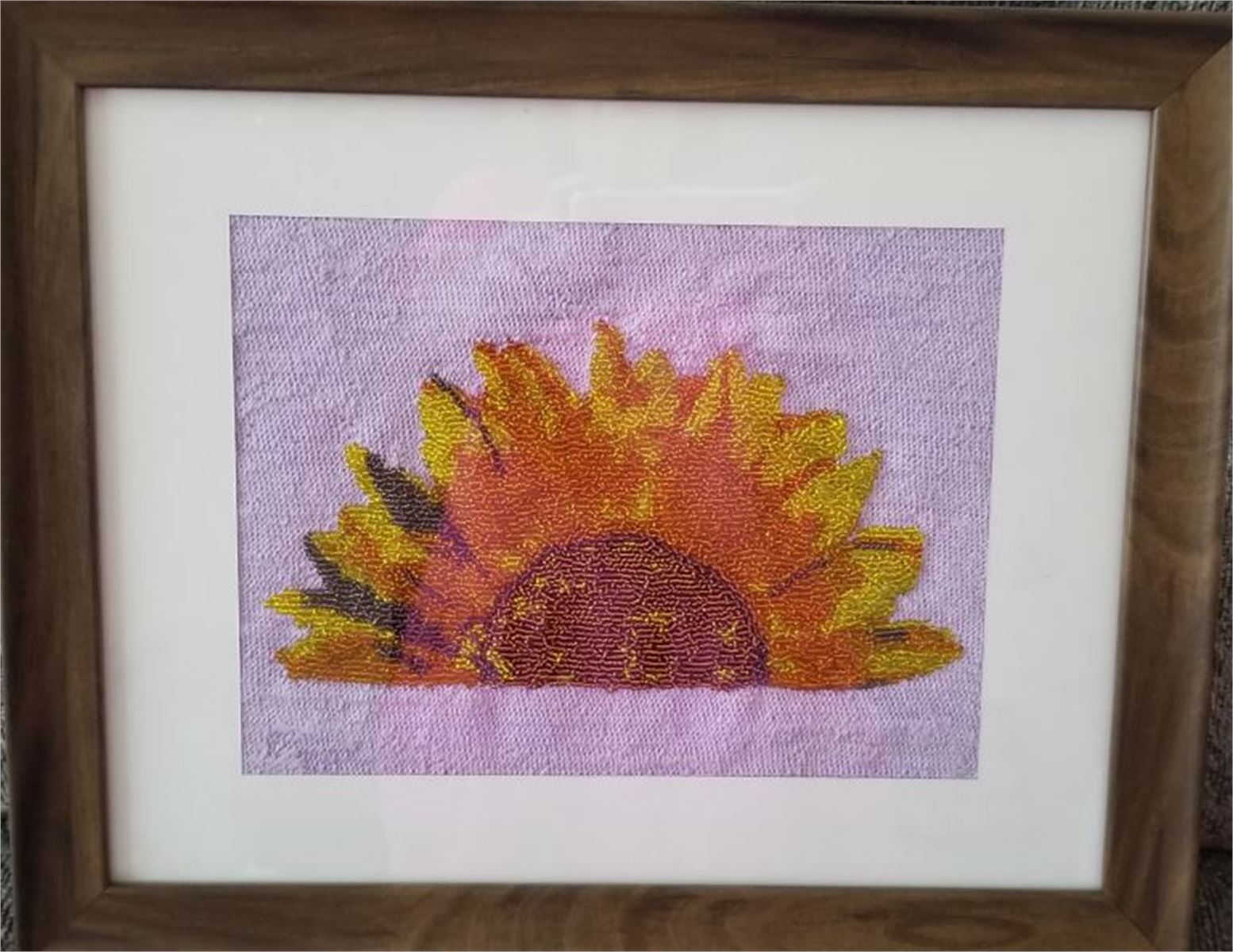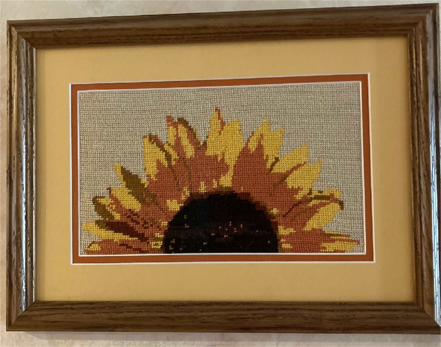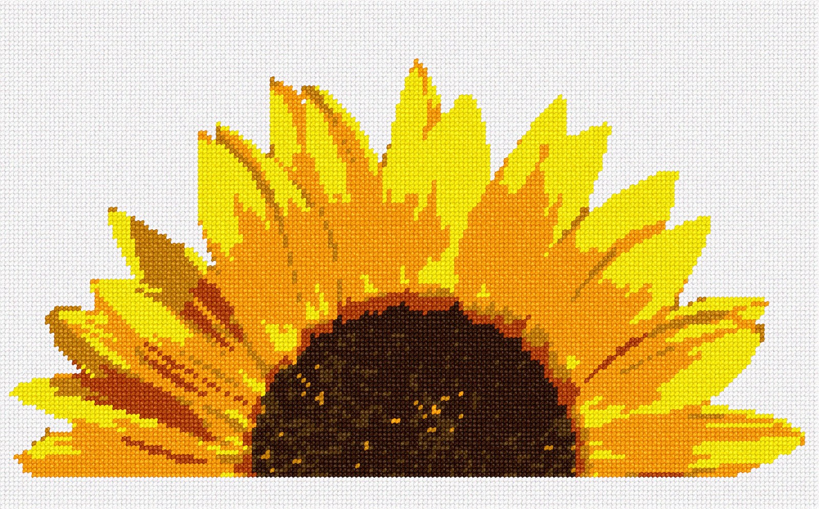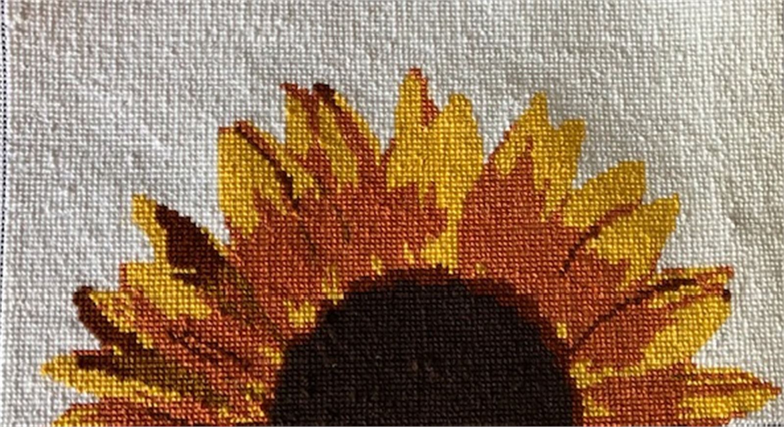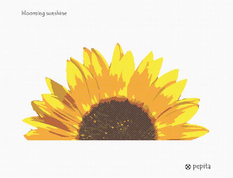 Top half of a sunflower. Flowers and floral design are among the most popular needlepoint designs. People have been stitching flowers and floral motifs for hundreds of years. Flowers are bright and pleasant, and most have underlying meanings to them.