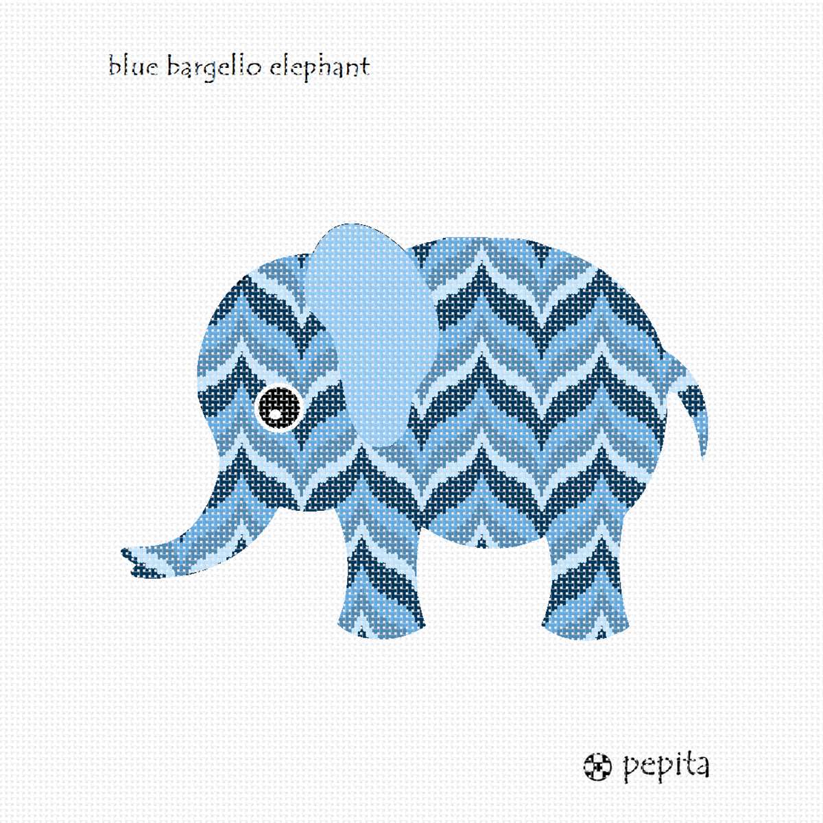 A blue bargello elephant for the baby nursery. Elephants are popular in needlepoint. They are beloved by people both young and old. These magnificent mammals spend between 12 to 18 hours eating grass, plants and fruit every single day. They use their long trunks to smell their food and lift it up into their mouths. Elephants have created their very own sunscreen. After a river or swamp bath, they’ll throw mud and sand up and over themselves to protect their skin from the hot burning sun.