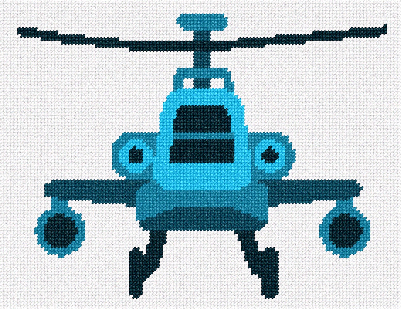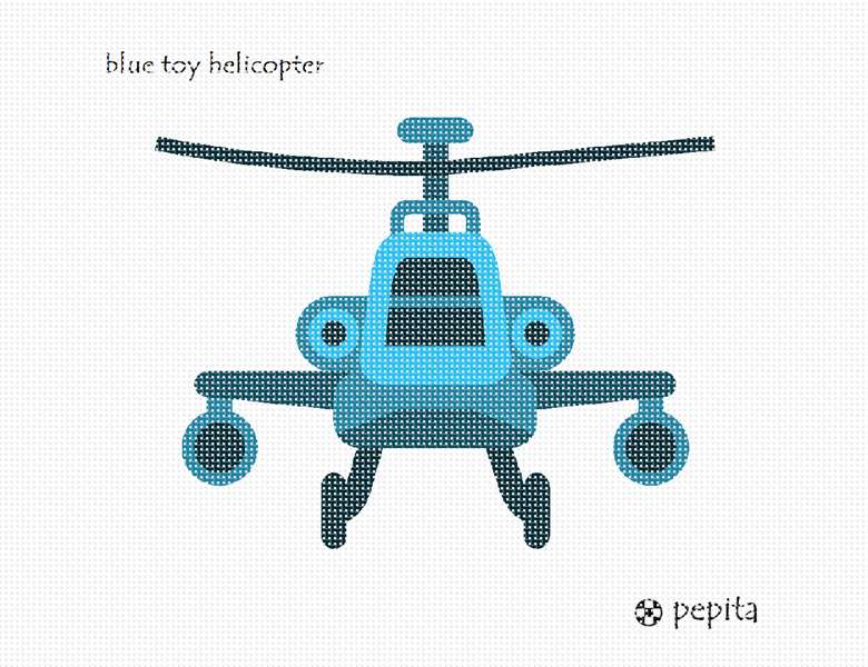 A helicopter toy in needlepoint. Stitch for a boy's room, or gift this simple project to a beginner needleponiter.