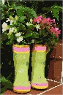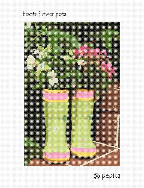 Plants thrive in a pair of boots vase. Flowers and floral design are among the most popular needlepoint designs. People have been stitching flowers and floral motifs for hundreds of years. Flowers are bright and pleasant, and most have underlying meanings to them.