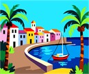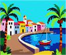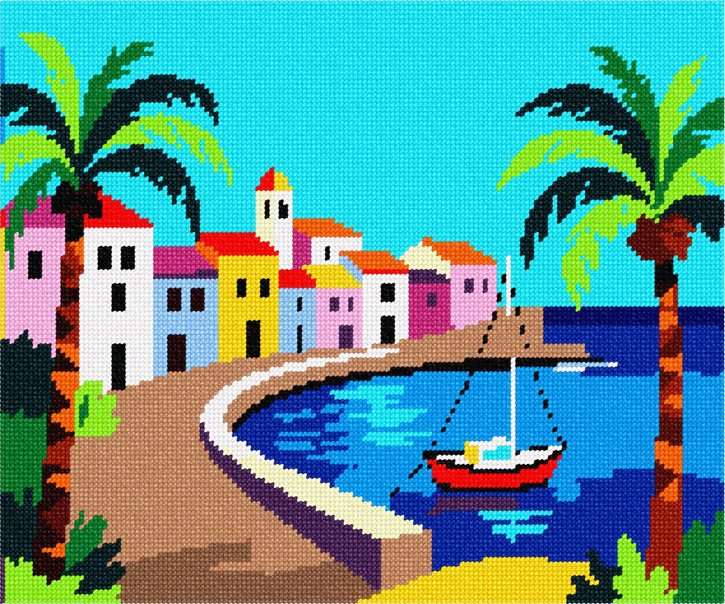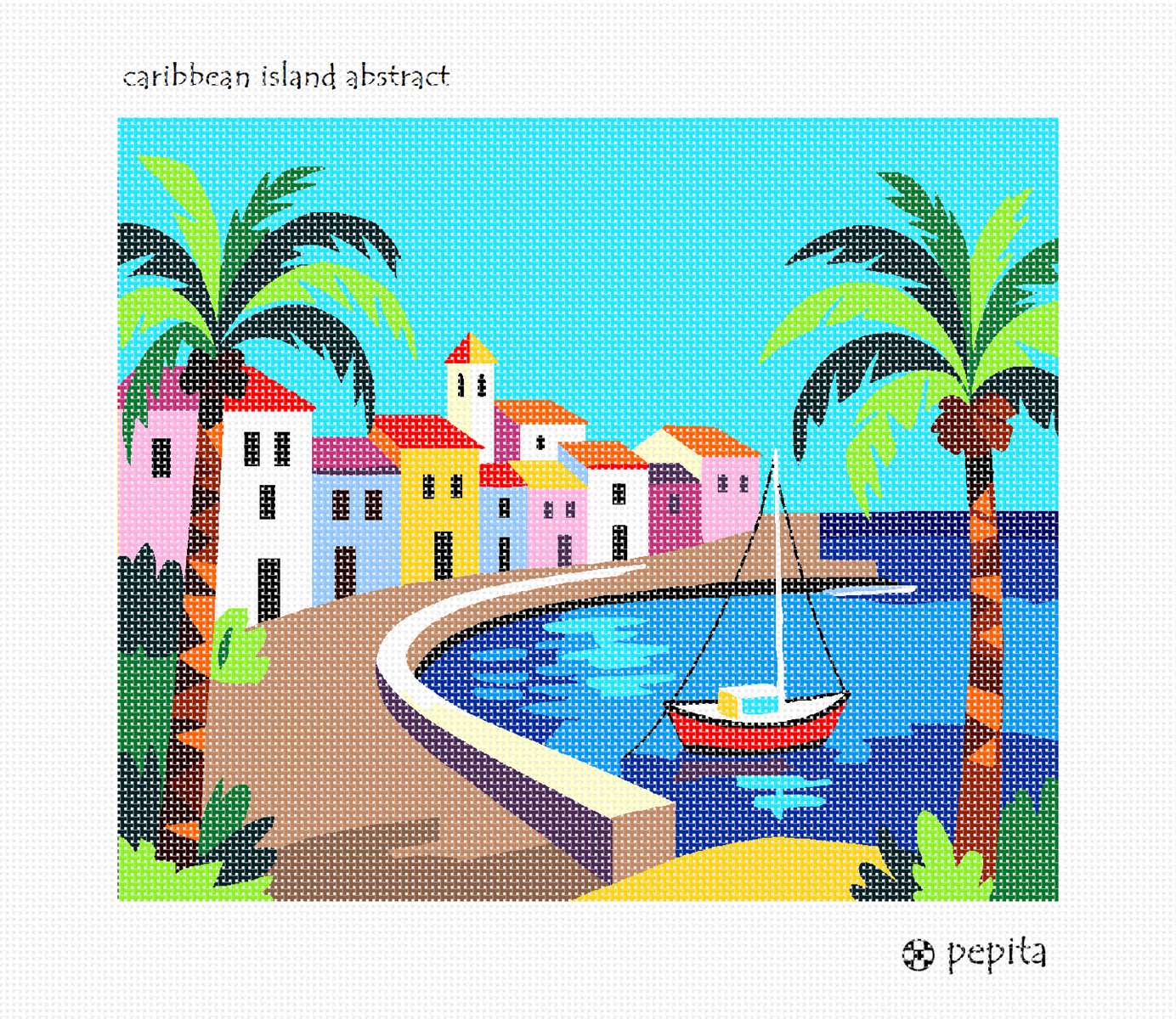 Perfect for a beginner, this colorful abstract Caribbean island is a perfect starter needlepoint project. Fun, fun fun!