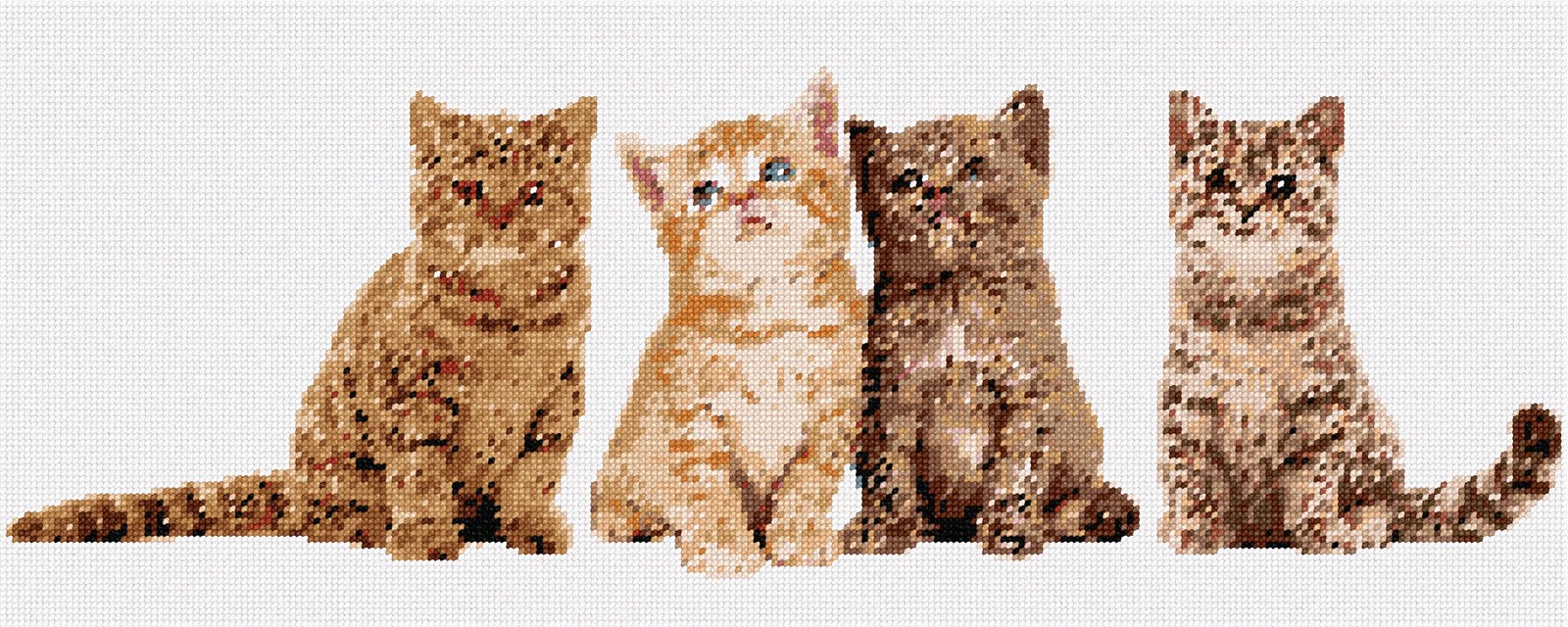 Four kittens posing together. A cat’s meow is used to communicate with humans, not other cats. Cats have more bones in their bodies than humans. Cats don’t have a sweet tooth. Every cat’s nosepad is unique – like a fingerprint. Cans can become addicted to tuna (no, not chocolate!). Cats groom themselves for over a third of the time they are awake.