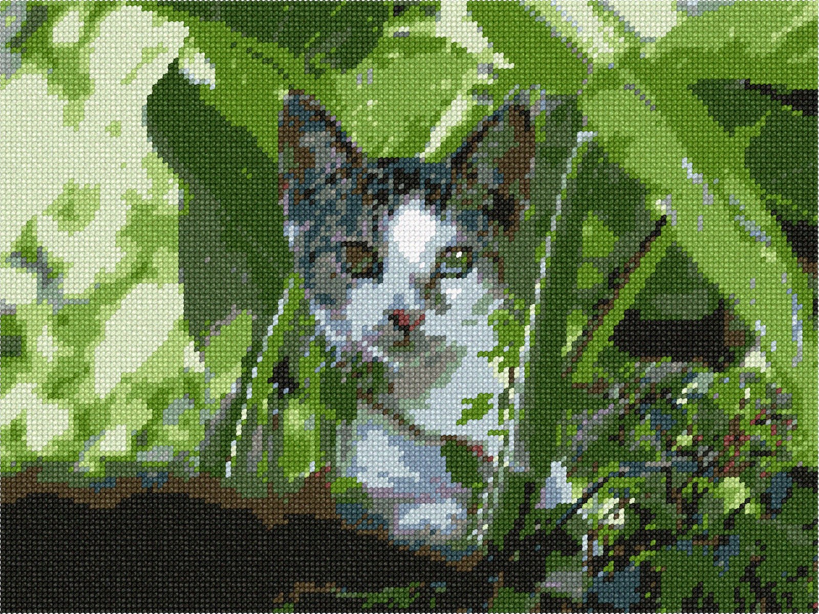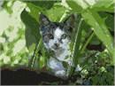 This cat is peeking through the foliage and is looking straight at you. A cat’s meow is used to communicate with humans, not other cats. Cats have more bones in their bodies than humans. Cats don’t have a sweet tooth. Every cat’s nosepad is unique – like a fingerprint. Cans can become addicted to tuna (no, not chocolate!). Cats groom themselves for over a third of the time they are awake.