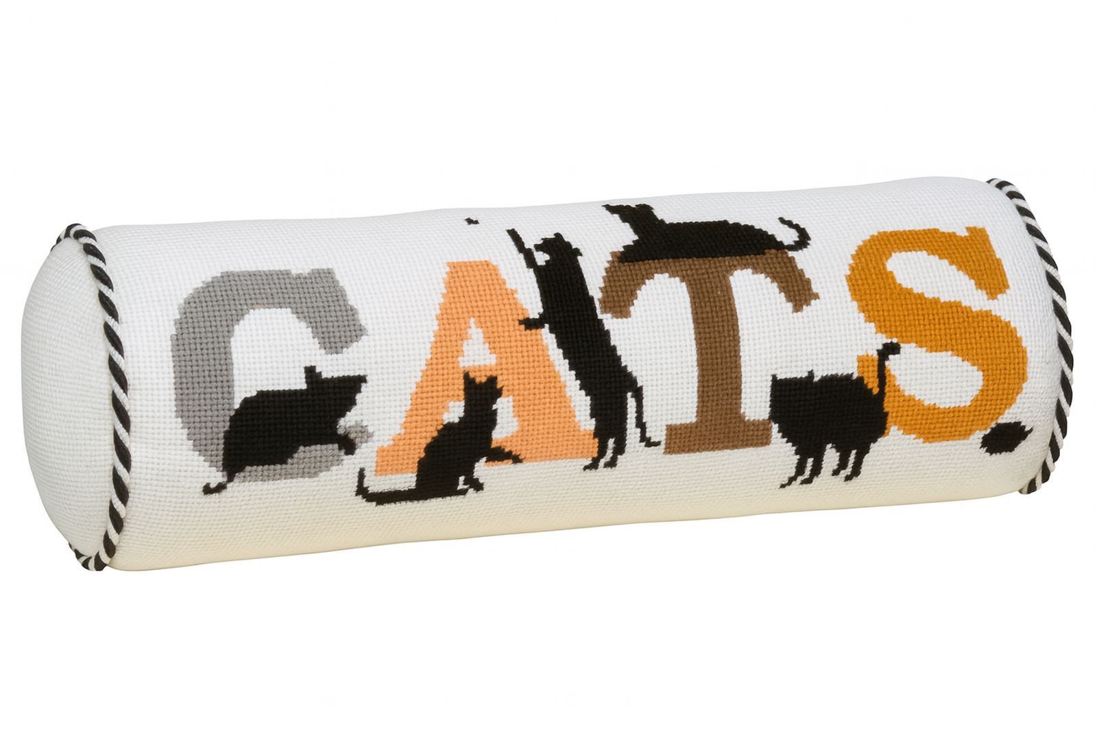 The word "Cat" with five comfortable cats making themselves at home. There is cat food prepared for when they get hungry. The letters are cat colors - grey, sable, brown, and cinnamon. Research has proven that petting a cat causes a release of the “love hormone” in humans. The technical term for this neurochemical is oxytocin, a hormone that is released when people fall in love. Oxytocin has also been proven to increase your emotional perception. Cat owners are more socially sensitive, trust other people more, and like other people more than people who don't own pets. If you call yourself a cat person, you'll tend to think other people like you more compared to someone who is neither a cat or dog person.