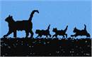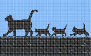 A mother cat with her kittens marching straight in line. A cat’s meow is used to communicate with humans, not other cats. Cats have more bones in their bodies than humans. Cats don’t have a sweet tooth. Every cat’s nosepad is unique – like a fingerprint. Cans can become addicted to tuna (no, not chocolate!). Cats groom themselves for over a third of the time they are awake.