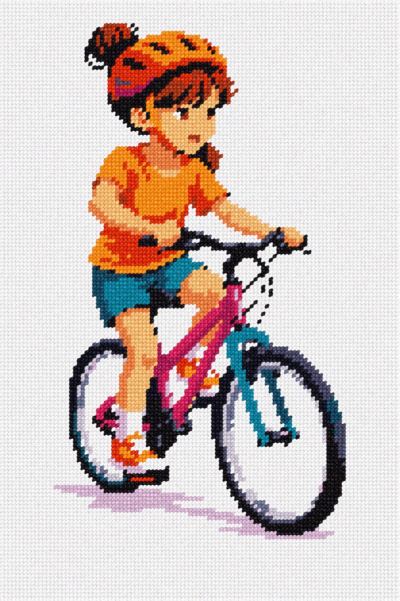 This cheerful image portrays a young girl riding a bicycle, full of motion and youthful excitement in a crisp, cel-shaded style. With its vibrant colors and uplifting mood, the design evokes freedom, adventure, and outdoor fun.