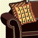 Loveseat in classic combination of deep mahogany with vibrant throw pillow threesome. This design coordinates with others in our Home Sweet Home series. A house is made of walls and beams, a home is built with love and dreams. ...
