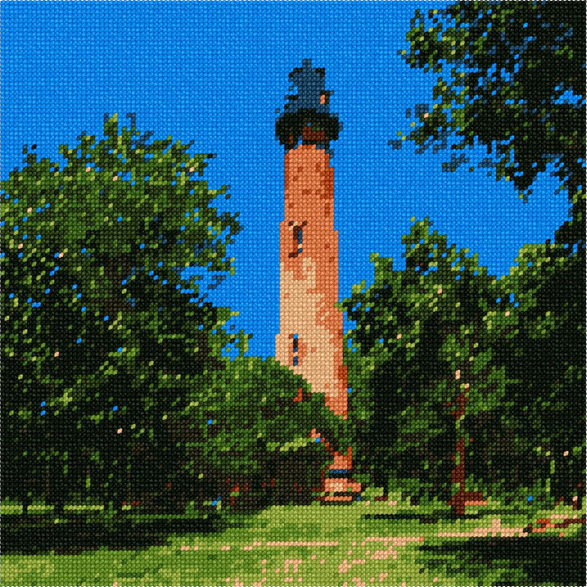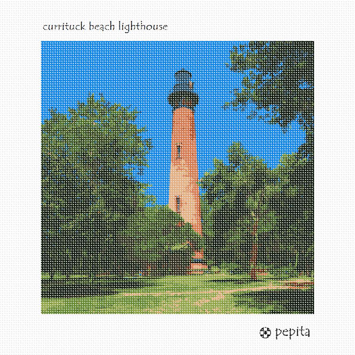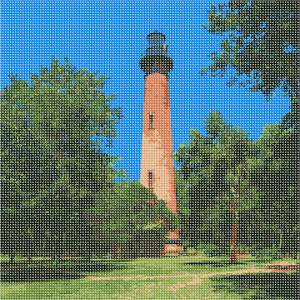 A lighthouse on the Outer Banks of North Carolina. Are you a lighthouse person? Many people love researching and visiting various lighthouses around the country. If you can't visit this lovely Currituck Beach Lighthouse in person, the next best thing is to needlepoint it.
