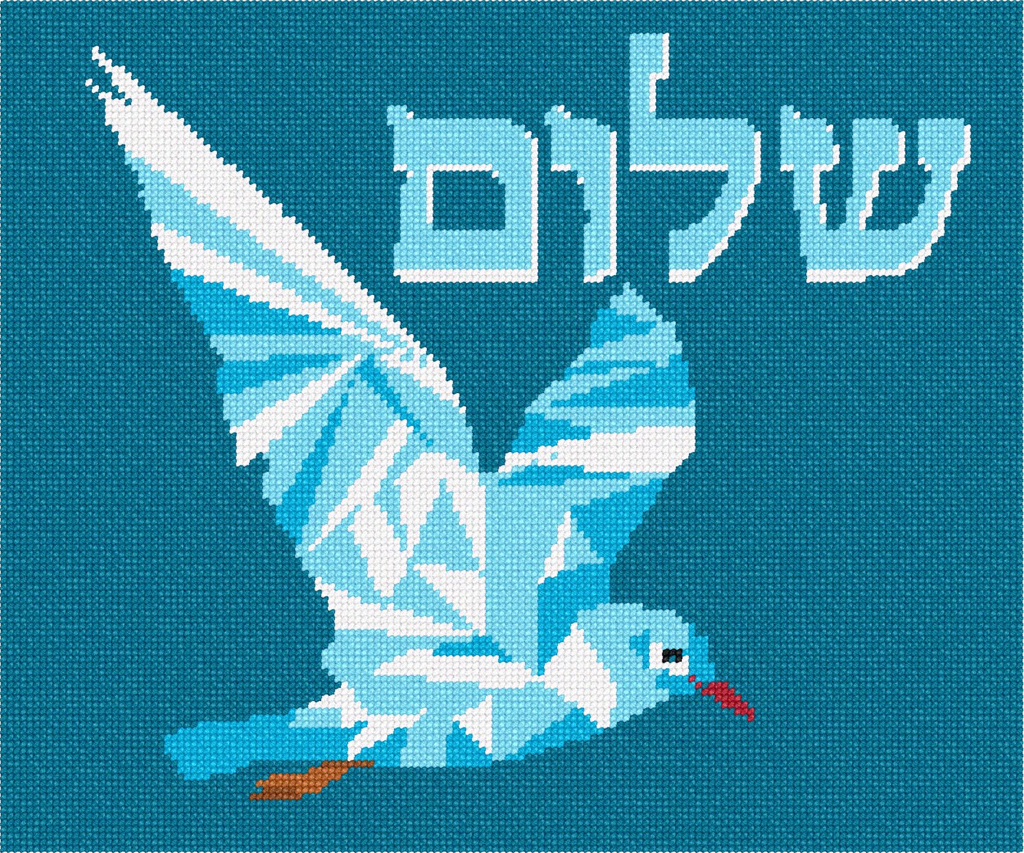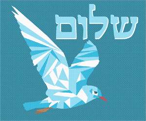 Peace in Hebrew with a geometric dove peace symbol. Shalom is something we have to encourage. We need peace in our world, our communities, our neighborhoods, our government, and our families.