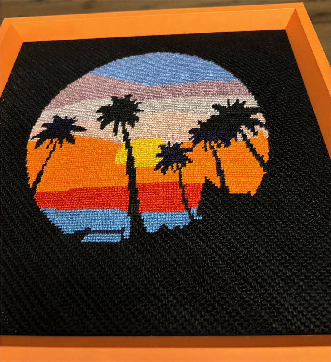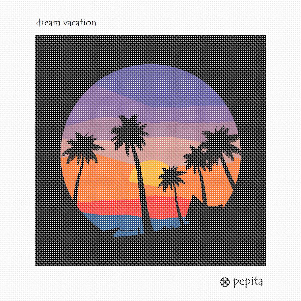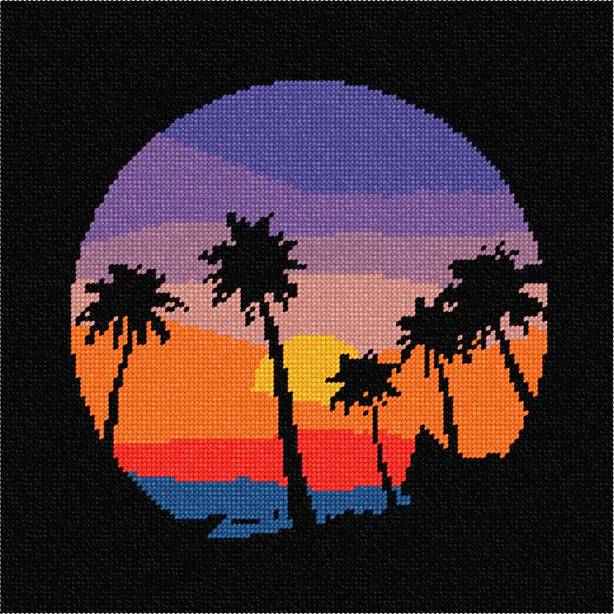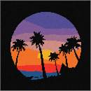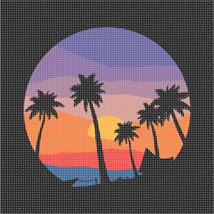 Palm trees and sunset at the oceanside... A dream vacation for most of us. Stitch this tranquil scene and relax as if you are there.