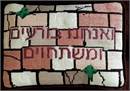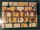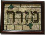 The hebrew for east - Mizrach - displayed against a background of ancient Jerusalem stone. Traditional Jewish prayer in the western hemisphere requires participants to face East, the direction where the Jewish Temple of old used to stand. The last remaining remnant of that holy site is known today as the Western Wall.