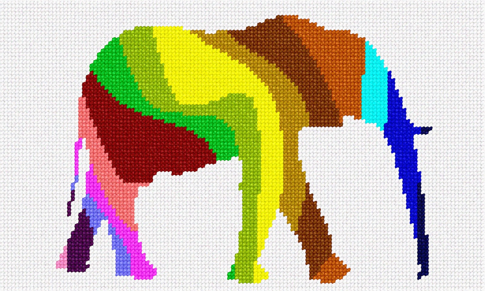 The shape of an elephant filled with colorful stripes. There are many designs in our palette silhouette series. This elephant is adorable and perfect for a beginner. Purchase as a kit, or buy just the plain canvas if you have many color threads in your stash.Elephants are popular in needlepoint. They are beloved by people both young and old. These magnificent mammals spend between 12 to 18 hours eating grass, plants and fruit every single day. They use their long trunks to smell their food and lift it up into their mouths. Elephants have created their very own sunscreen. After a river or swamp bath, they’ll throw mud and sand up and over themselves to protect their skin from the hot burning sun.