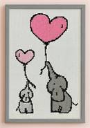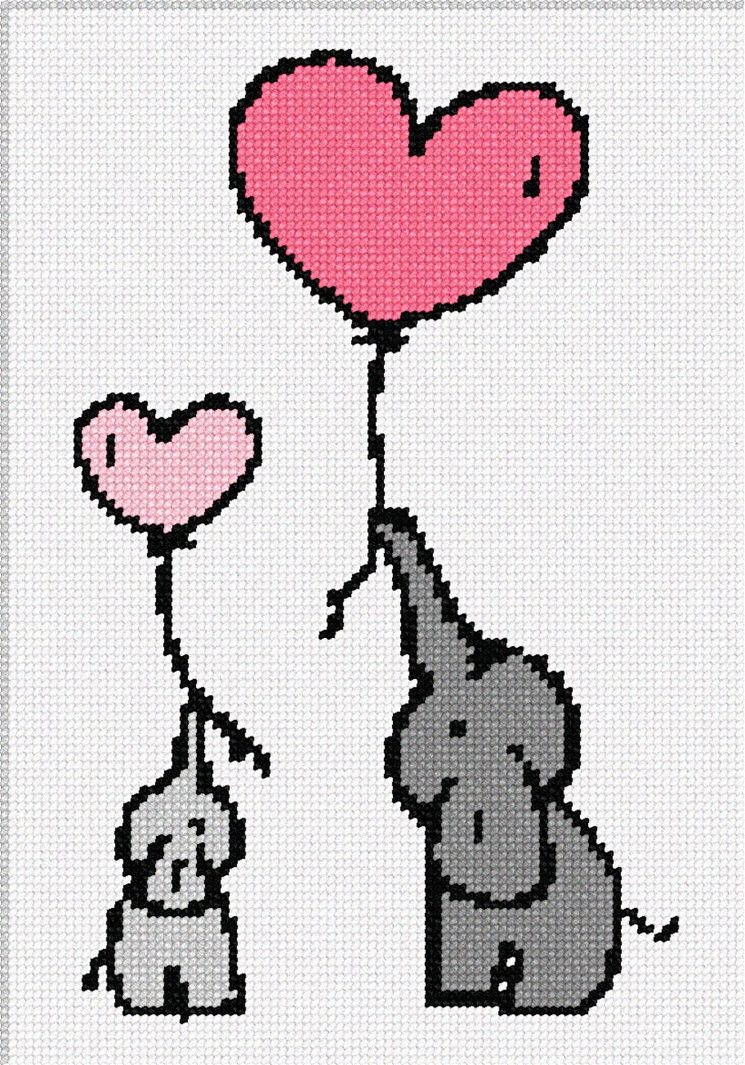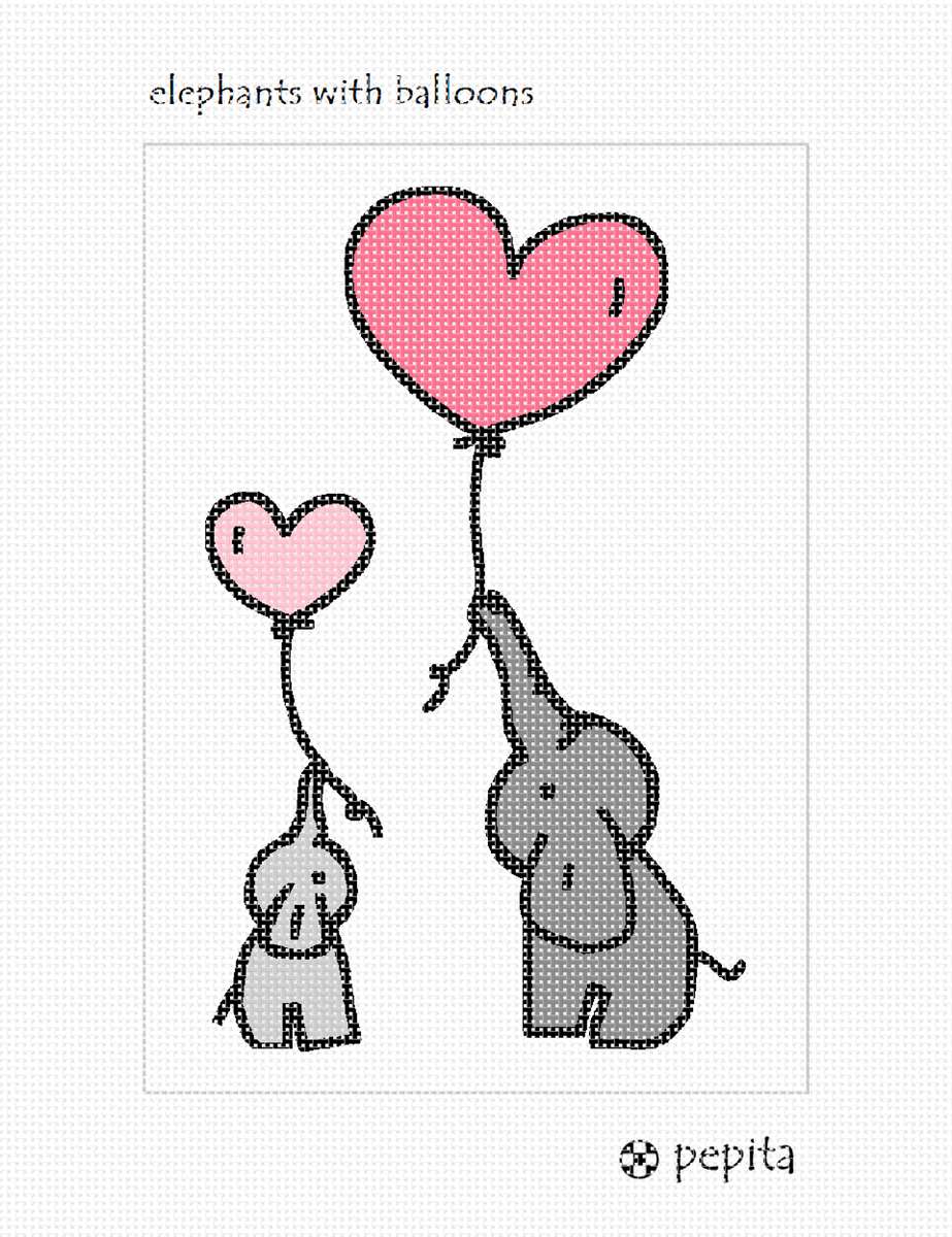 Two elephants, either mom and babe or siblings holding adorable pink heart shaped balloons. Elephants are popular in needlepoint. They are beloved by people both young and old. These magnificent mammals spend between 12 to 18 hours eating grass, plants and fruit every single day. They use their long trunks to smell their food and lift it up into their mouths. Elephants have created their very own sunscreen. After a river or swamp bath, they’ll throw mud and sand up and over themselves to protect their skin from the hot burning sun.