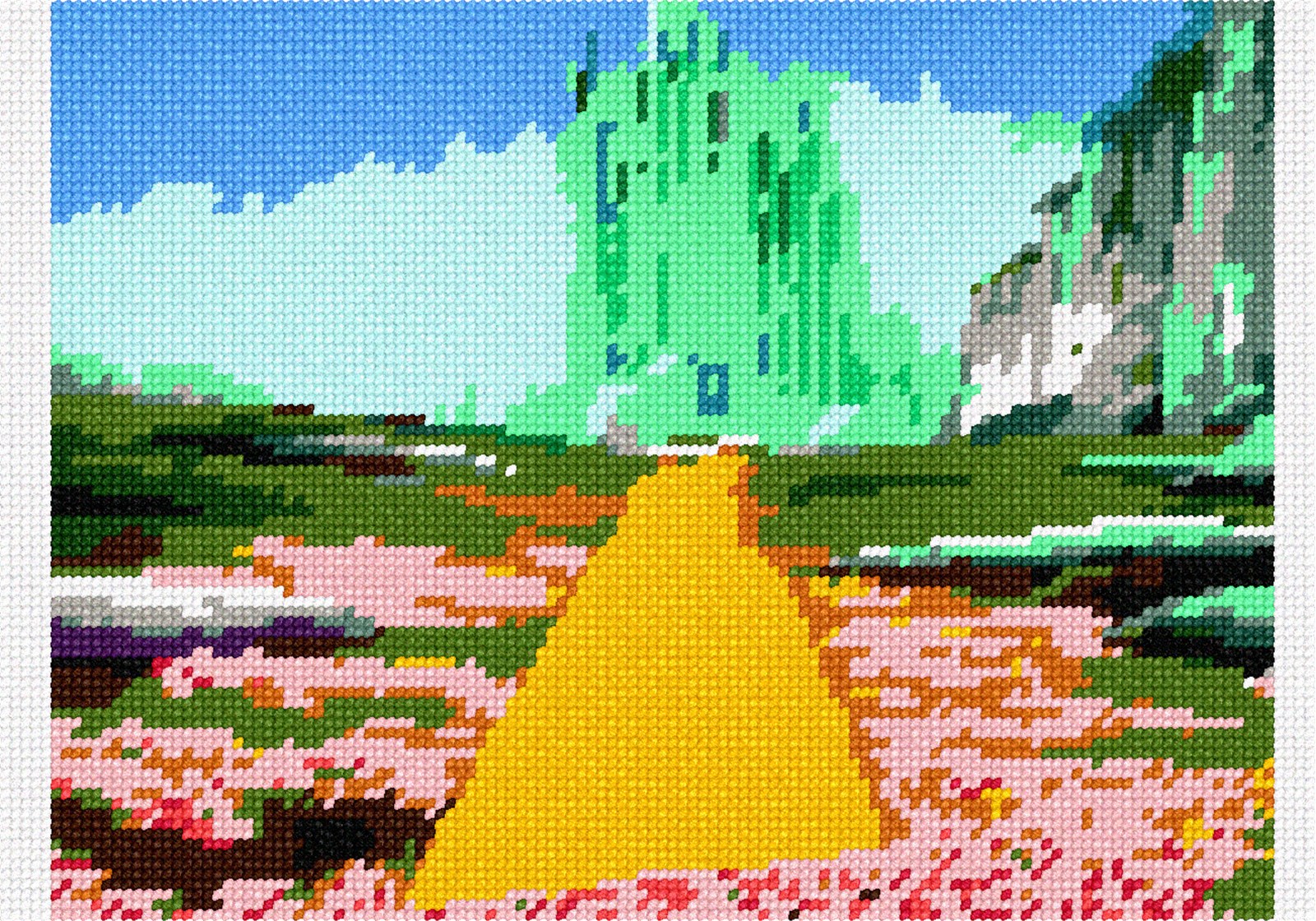 Located in the center of the Land of Oz, Emerald City is at the end of the yellow brick road, which starts in Munchkin Country.