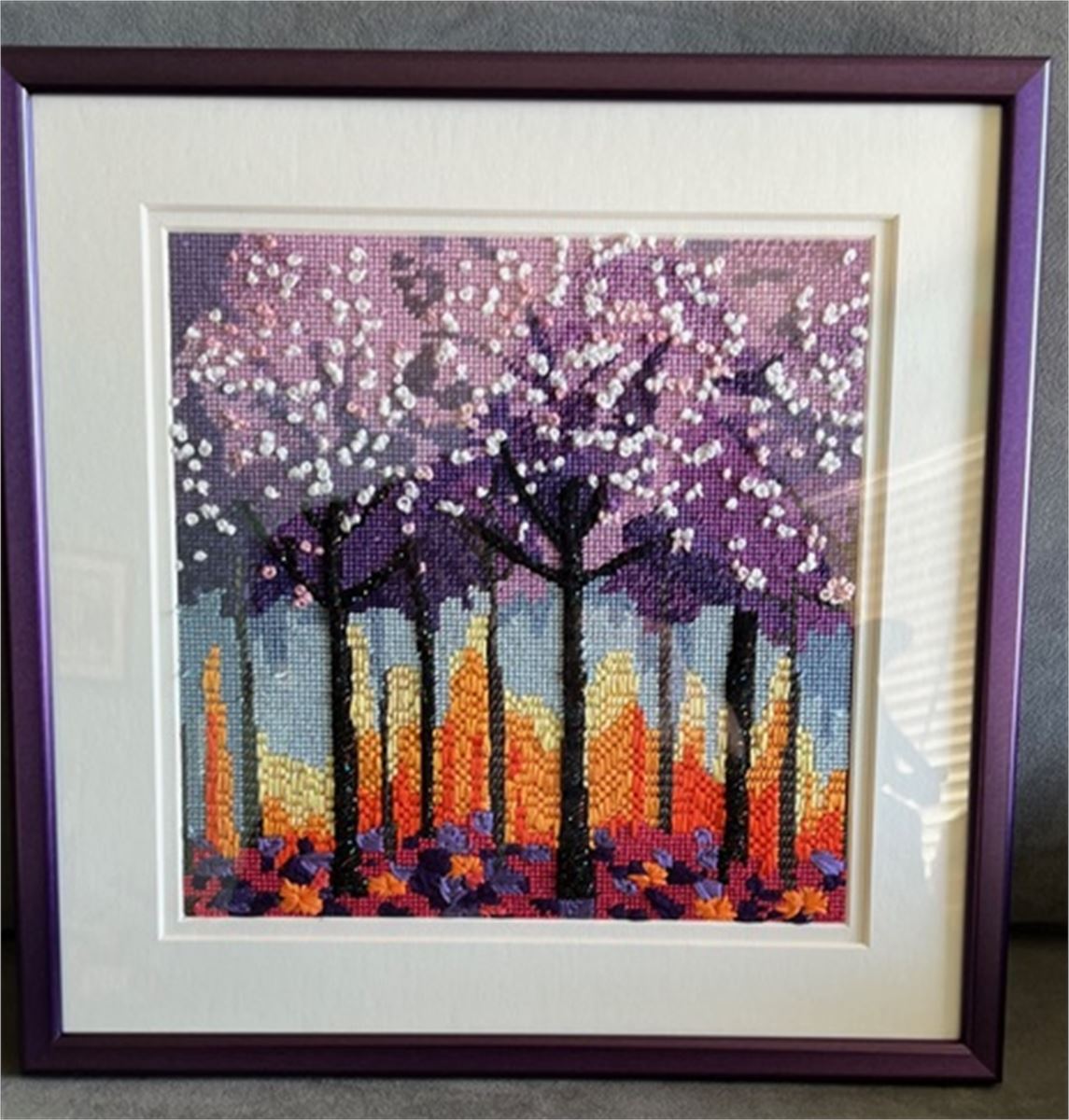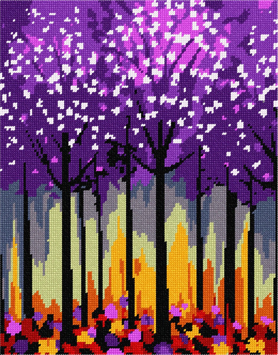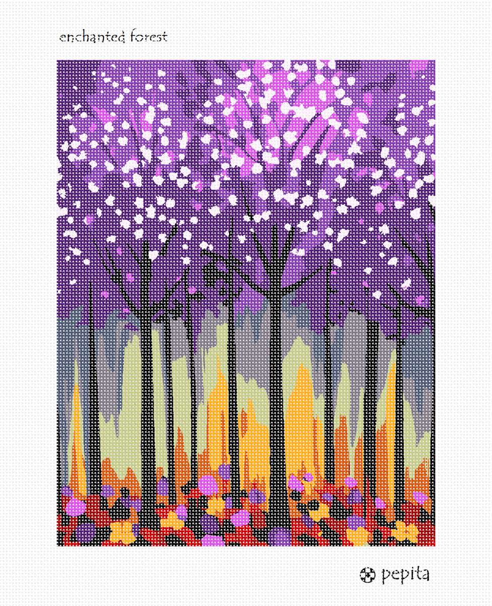 Cool, contemporary, and vivid, this fairytale needlepoint reminds me of a magical wonderland. This is fun to stitch and easy too.
