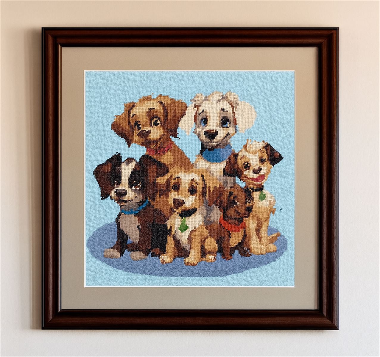 If you like dogs, this needlepoint will make you smile. A dog is man's best friend. A dog is as smart as a two year old toddler. A dog has a sense of time and misses its owner when he/she is gone. Dogs have three eyelids. Their sense of smell is 1,000 to ten million times better than humans. Dogs can hear four times as far as humans. A dog can smell human feelings. Cool!