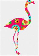 A flamingo needlepoint with neon art deco flowers. Stitch the pair as well.