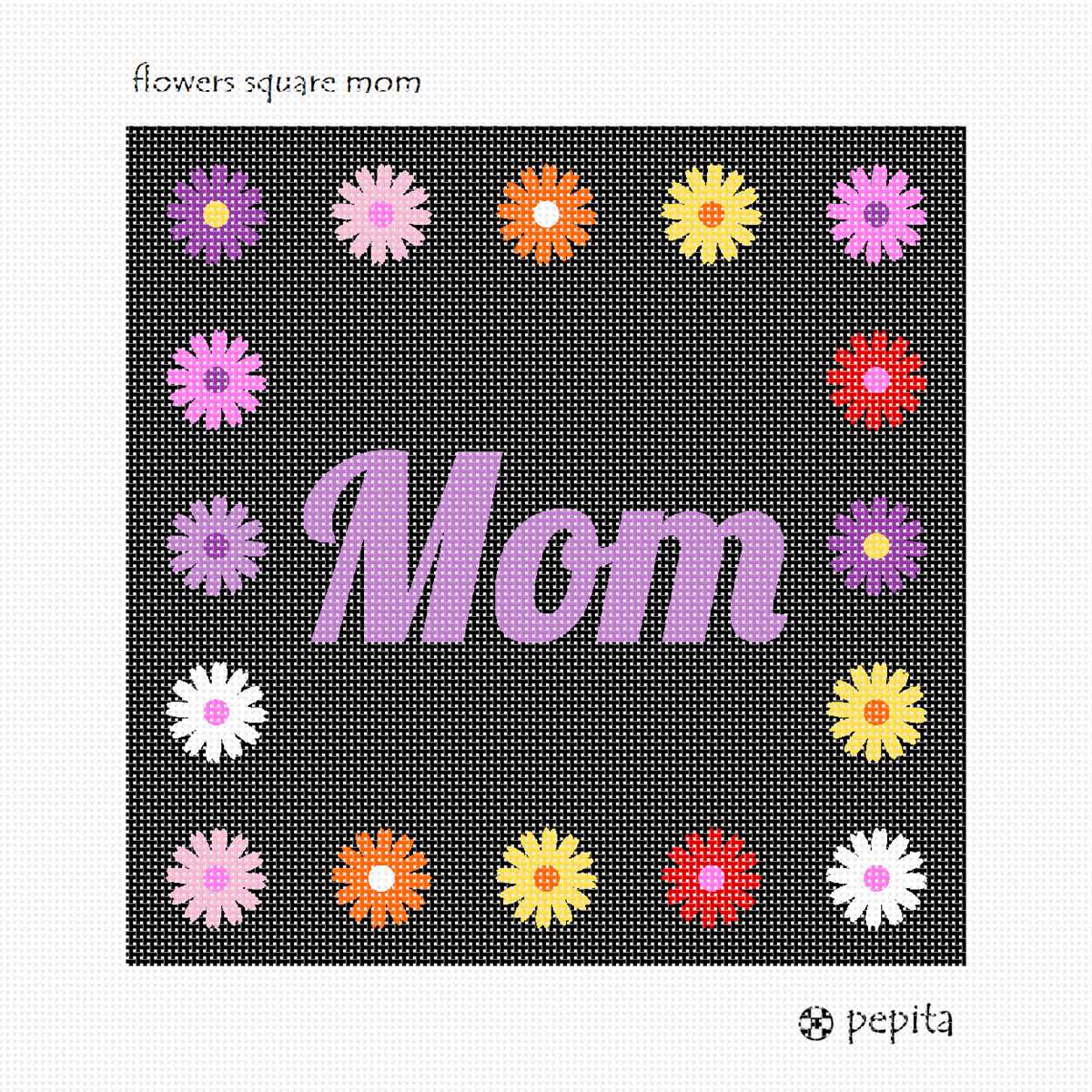 Wow! What a perfect gift for Mom. This square floral border complements the word "Mom" in script. Indulge in a needlepoint gift for your mother. She will be delighted with this.
