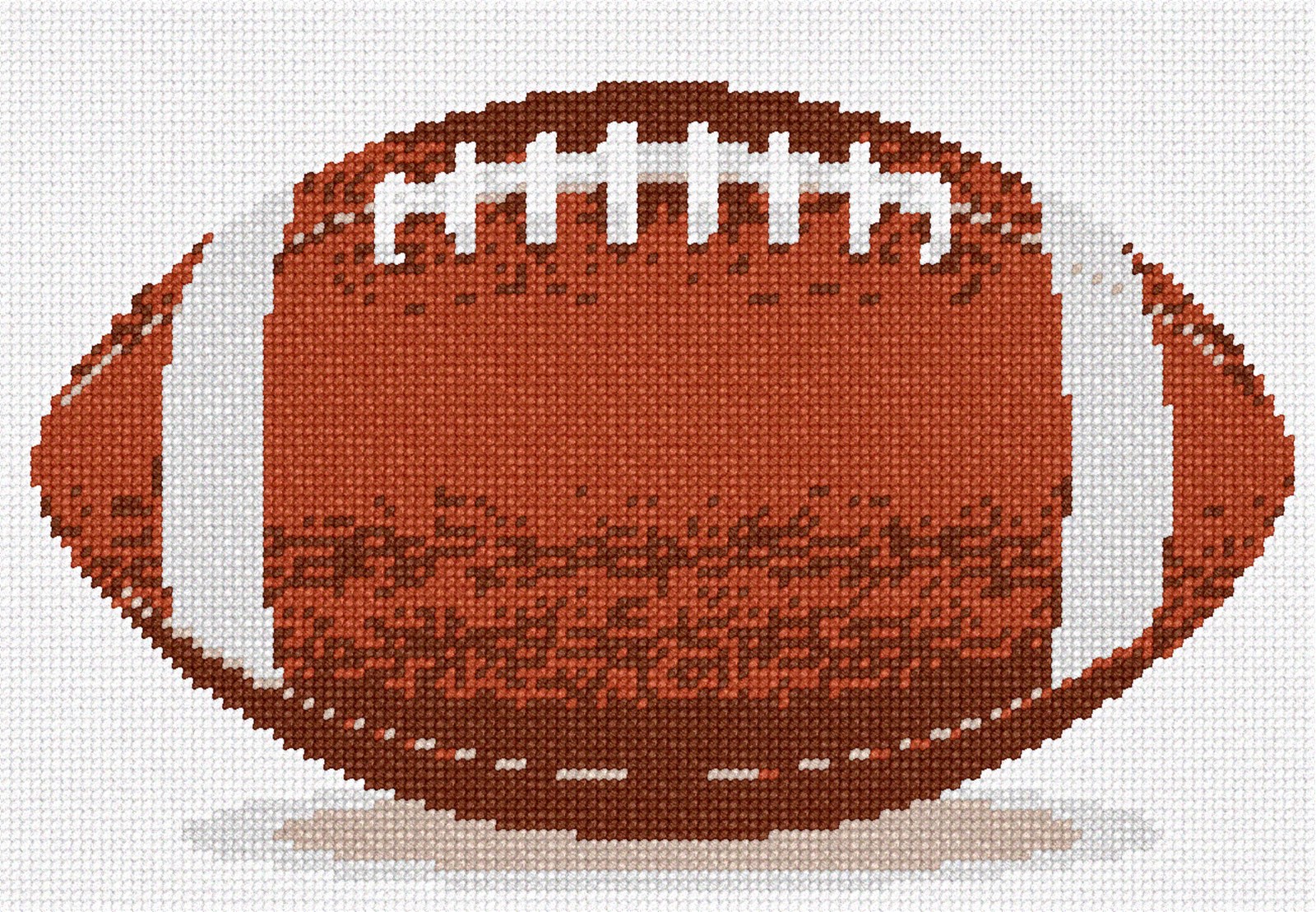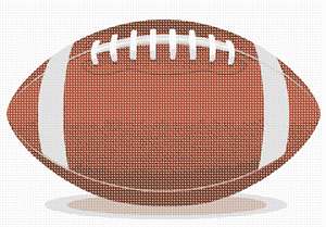 An American football, shaped as a spheroid with pointy ends, in classic colors.