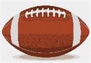 An American football, shaped as a spheroid with pointy ends, in classic colors.