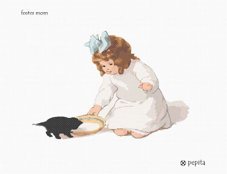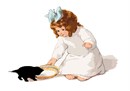 The young girl dotes on the forlorn kitten in her care.