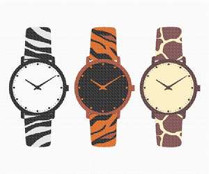 Here are three fabulously funky watches in animal print theme. There's zebra, leopard, and giraffe. Watches are still in even with all the technology out there, and they make great gifts for people of all ages and nationalities. Did you ever notice, timers displayed in commercial stores and retail centers show the time 10:10. Reason behind setting hands in the specific position is to create an impression of a smiley face. This might make customers feel happy and happy customer means more sales. This is called "Happy Time." Watches come in many colors, but the most commonly used and gifted watch color is black.