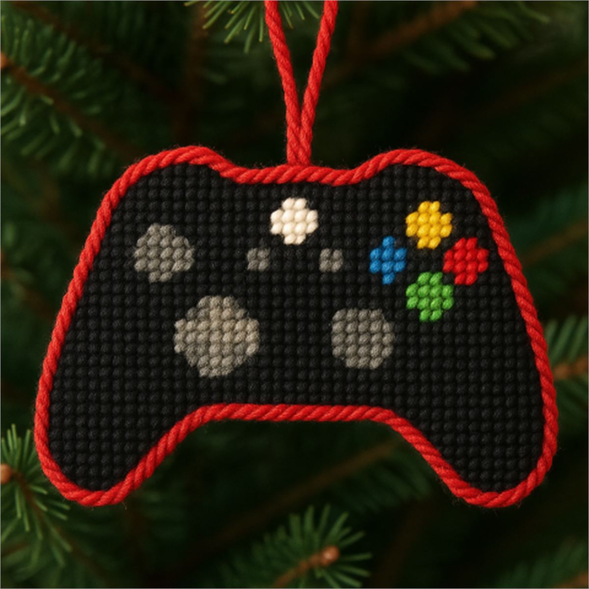 Game controller to needlepoint and finish as an ornament. (Available WITH or WITHOUT thread. Thread pack does not include thread for the white background.)