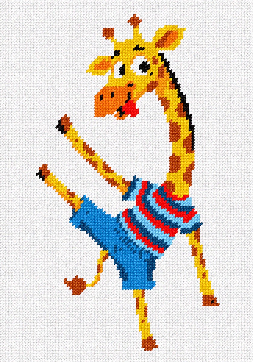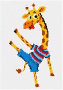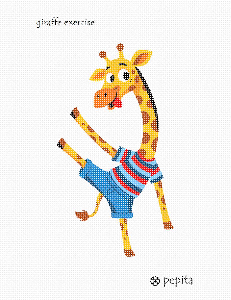 A fun needlepoint of a dancing giraffe. Easy to stitch and works up quickly