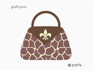 Stitch a zebra pocketbook with a red flap and fleur de lis. A sophisticated feminine needlepoint.