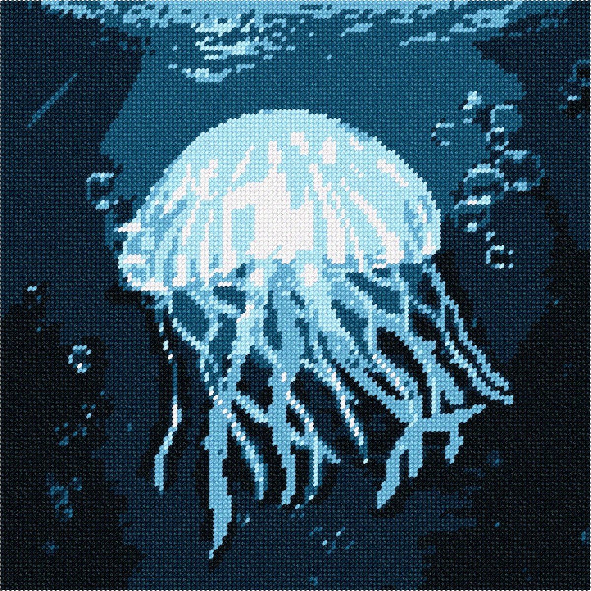 Some jellyfish glow in the dark. They are bioluminescent, which means that their body produces light. This is caused by a photoprotein, called aequorin, which emits blue light. The moon jelly differs from many jellyfish in that they lack long, potent stinging tentacles. Instead they have hundreds of short, fine tentacles that line the bell margin. The moon jelly's sting is mild and most people have only a slight reaction to it if anything at all. The crystal jellyfish have remarkably sophisticated eyes, and they are dangerously venomous; a moderate sting can cause death within a few minutes.