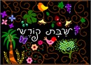 Hamsa with the seven species, a bird, butterfly, and flowers. A hamsa is a palm-shaped amulet popular throughout the Middle East and North Africa and commonly used in jewelry and wall hangings.
