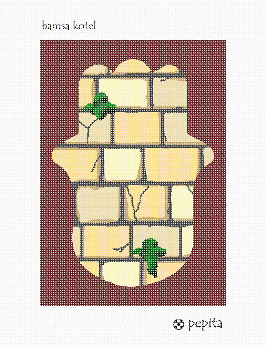 Hamsa shape filled with stones of the Western Wall. A hamsa is a palm-shaped amulet popular throughout the Middle East and North Africa and commonly used in jewelry and wall hangings. The Western Wall, or “Wailing Wall”, is the most religious site in the world for the Jewish people. Located in the Old City of Jerusalem, it is the western support wall of the Temple Mount. Thousands of people journey to the wall every year to visit and recite prayers.