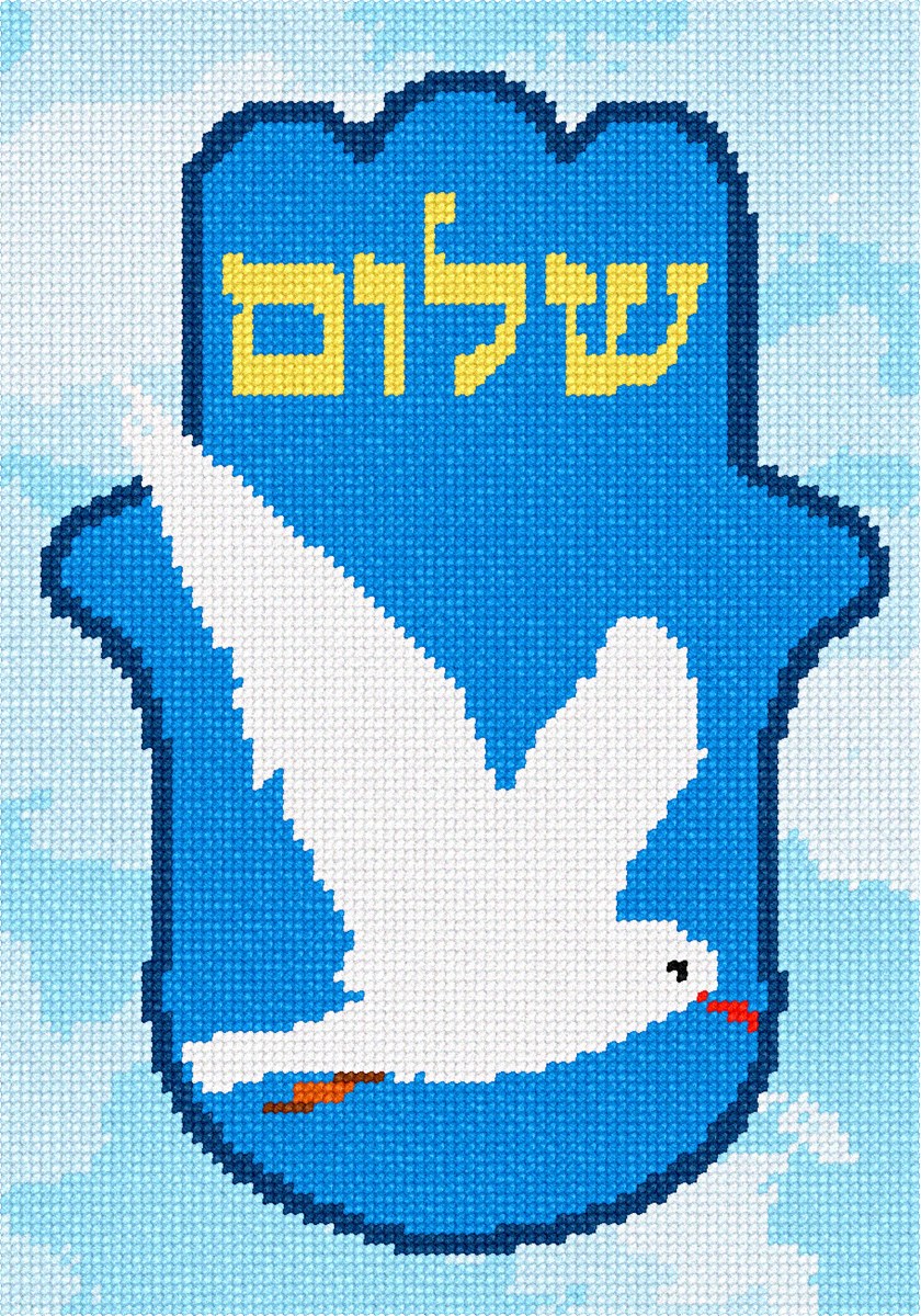Hamsa with the Hebrew word Shalom and a dove to represent peace. The world today needs to be reminded of peace on a daily basis. A hamsa is a palm-shaped amulet popular throughout the Middle East and North Africa and commonly used in jewelry and wall hangings.