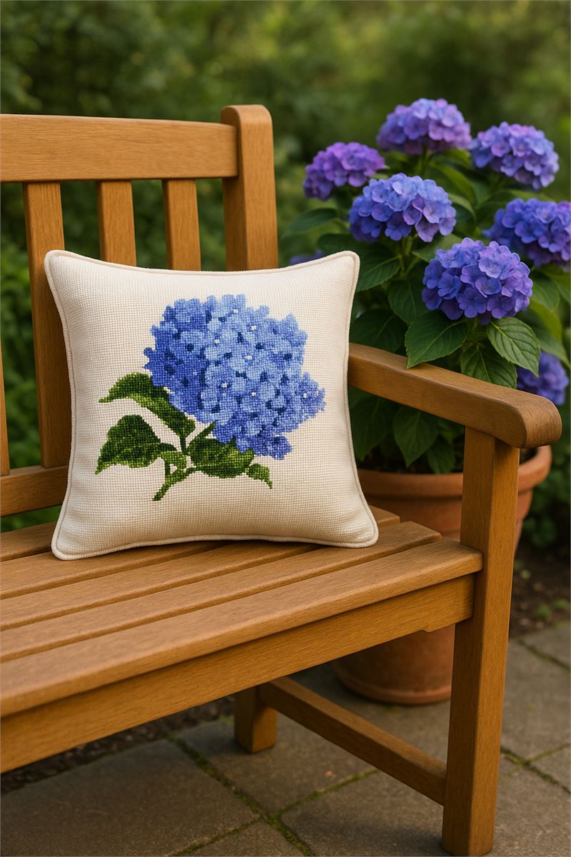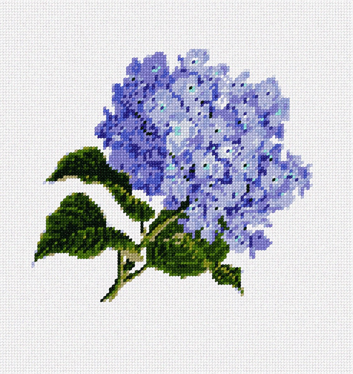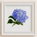 A lavender-blue hydrangea bunch in bloom. See coordinating pink design. Hydrangea symbolizes heartfelt emotions. It can be used to express gratitude for being understood. In its negative sense hydrangea symbolizes frigidity and heartlessness. First discovered in Japan, the name hydrangea comes from the Greek “hydor,” meaning water, and “angos,” meaning jar or vessel.
