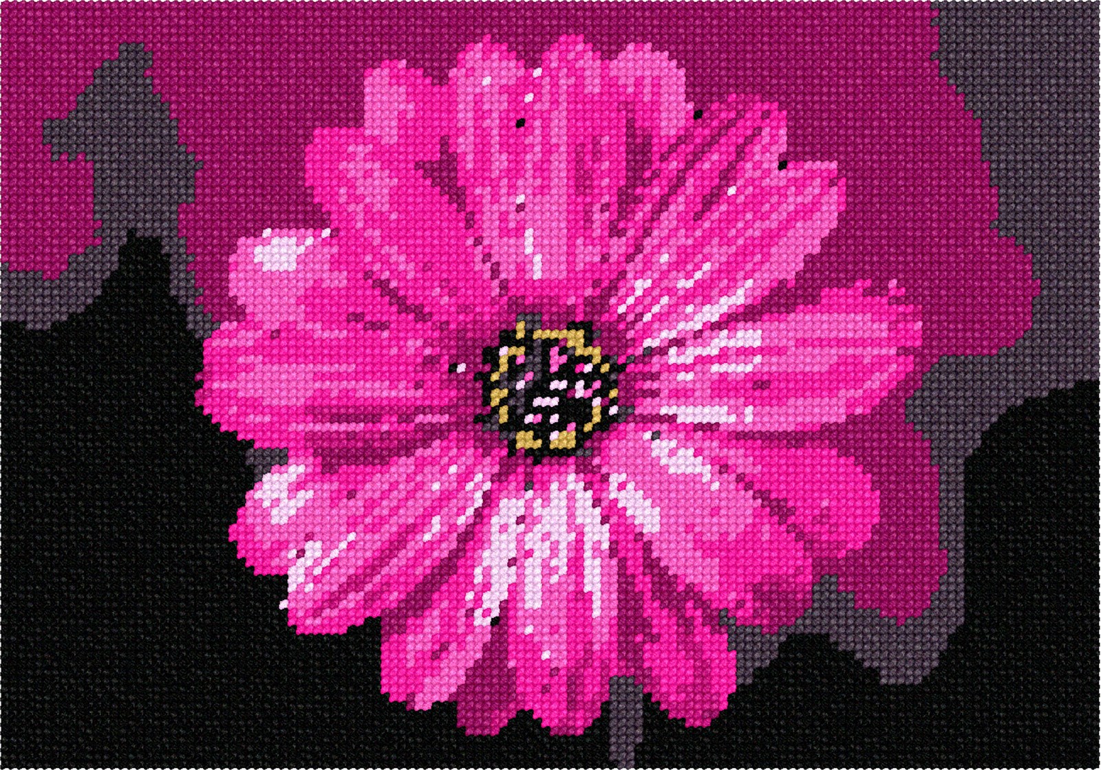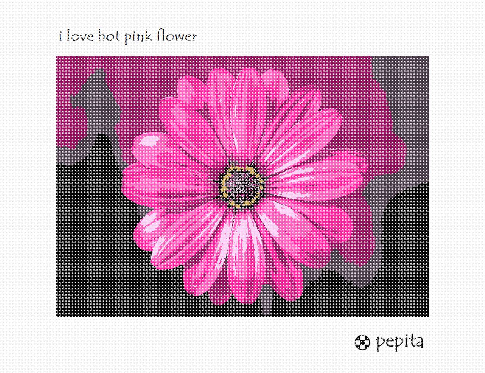 Bright and bold hot pink flower. Flowers and floral design are among the most popular needlepoint designs. People have been stitching flowers and floral motifs for hundreds of years. Flowers are bright and pleasant, and most have underlying meanings to them.