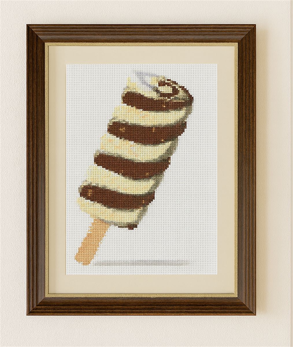A refreshing treat in needlepoint. Many people think vanilla was the first ice cream flavor invented since it is the most popular, but that is actually not the case. In the 4th century B.C., the Roman emperor Nero had servants go into the mountains to collect snow that was used to make a frozen dessert flavored with honey, nuts, and fruit toppings