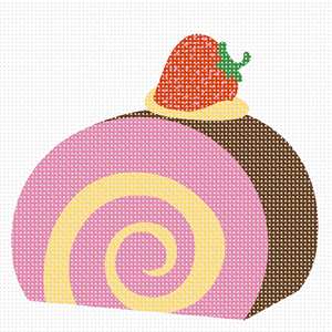 A perfect beginner needlepoint. Stitch a ice cream or jelly custard roll cake dessert with a strawberry on the top. Sure to be a winner!