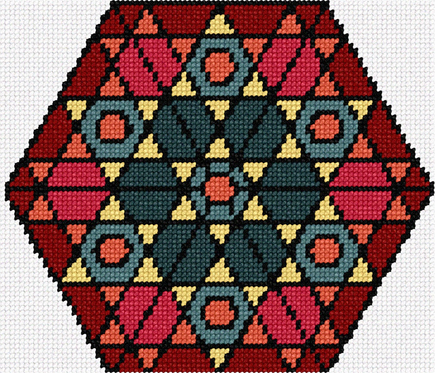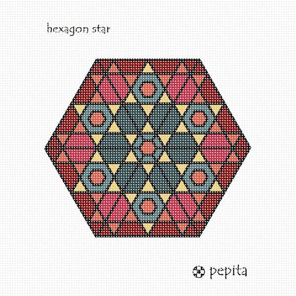 Six-point stars within a larger star with hexagon shapes. If you like geometric designs, this one is for you.