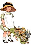A girl embroidering flowers into fabric. This piece evokes peace and tranquility in beautiful soft pastel colors. Based on vintage artwork.