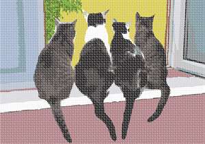 Four cats looking out the window together. A cat’s meow is used to communicate with humans, not other cats. Cats have more bones in their bodies than humans. Cats don’t have a sweet tooth. Every cat’s nosepad is unique – like a fingerprint. Cans can become addicted to tuna (no, not chocolate!). Cats groom themselves for over a third of the time they are awake.
