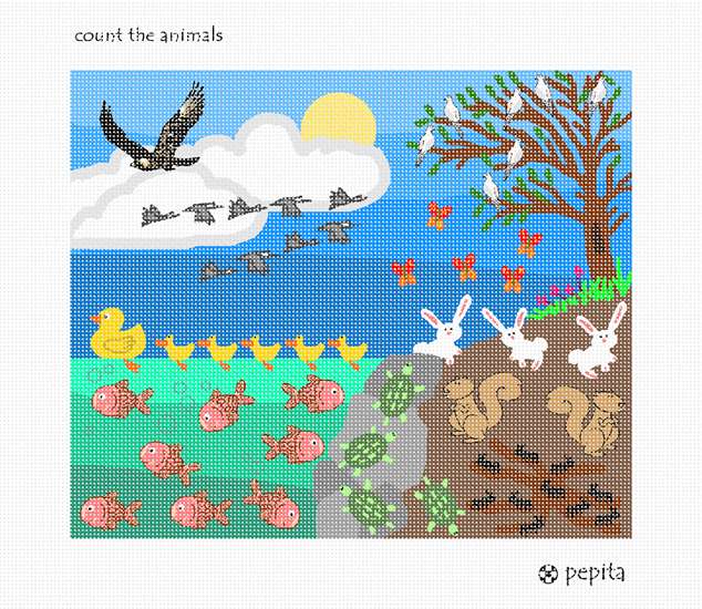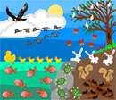 1 Eagle - 2 Sqirrels - 3 Rabbits - 4 Turtles - 5 Butterflies - 6 Ducks - 7 Doves - 8 Fish - 9 Geese - 10 Ants