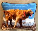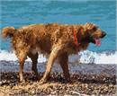 This dog is excited to be at the water's edge. A dog is as smart as a two year old toddler. A dog has a sense of time and misses its owner when he/she is gone. Dogs have three eyelids. Their sense of smell is 1,000 to ten million times better than humans. Dogs can hear four times as far as humans. A dog can smell human feelings. Cool!